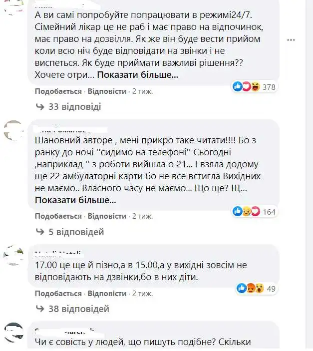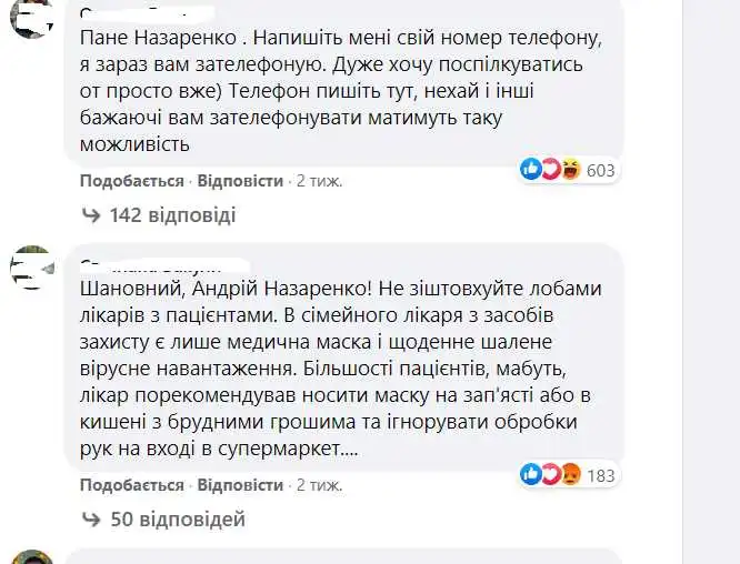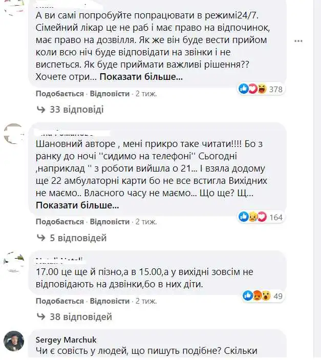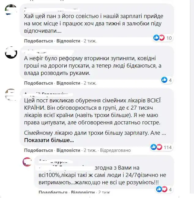 Це висловлення та ще низка характеристик роботі сімейних лікарів у пості очільника області викликали чимале обурення у фейсбук-користувачів. Під дописом назбиралося понад 800 коментарів.