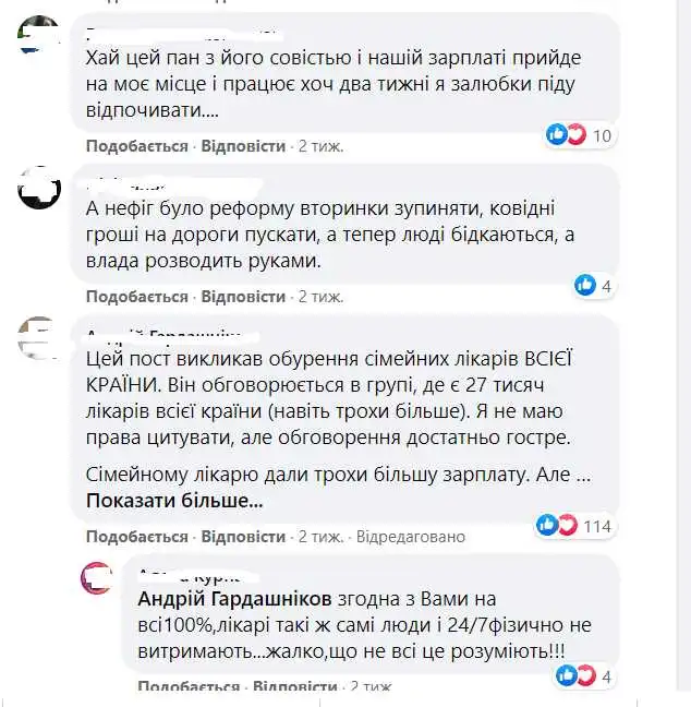 Як зазначив у коментарях лікар-онколог Андрій Гардашніков, цей пост викликав обурення сімейних лікарів всієї країни.