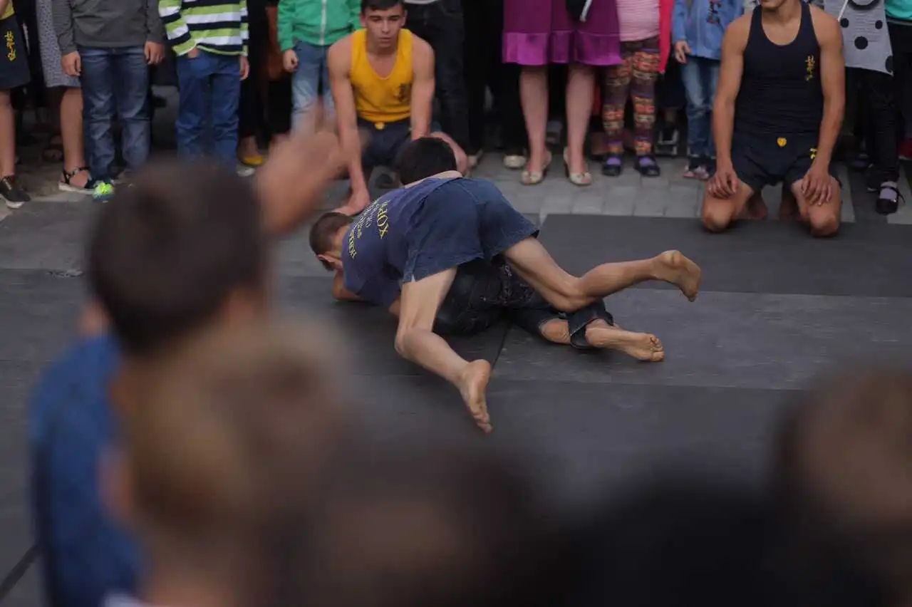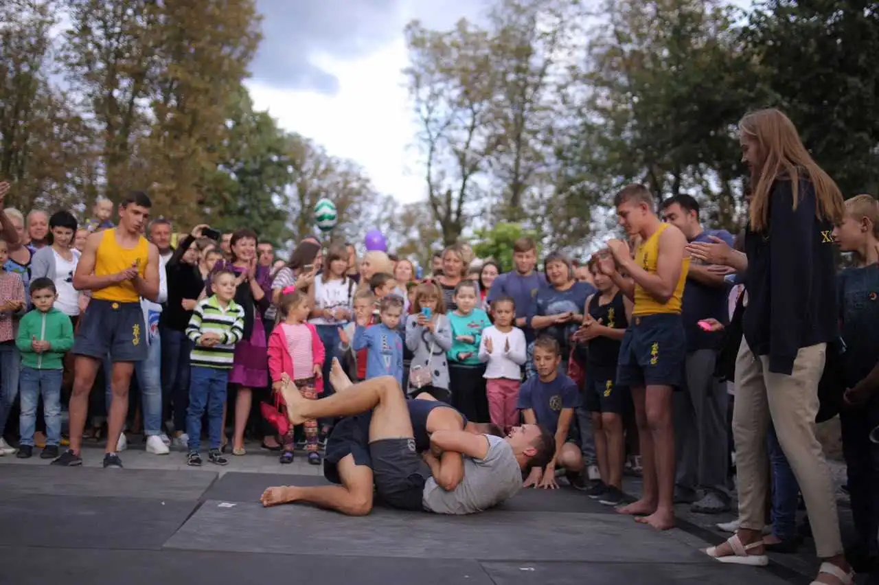 Ввечері у парку провели показовий виступ представники Новомиргородської федерації хортингу – хлопці демонстрували різноманітні прийоми і взяли участь у кількох поєдинках з бажаючими – з᾿ясувалося, що й серед глядачів були чоловіки, які знаються на контактних видах спорту. Спокусився шансом вийти на мати навіть ді-джей, який відповідав за озвучування шоу, бо у його натурі успішно вживалися творча особистість та спортсмен-борець!