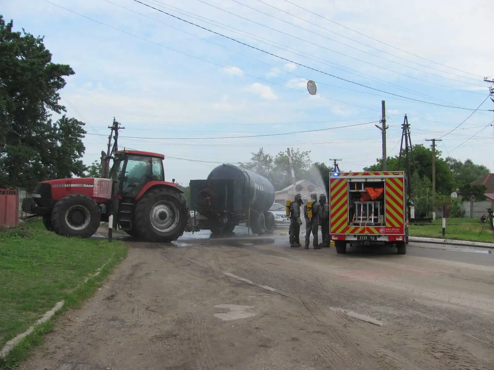 Здійснили оповіщення населення про евакуацію, оточено зону можливого хімічного забруднення та здійснили евакуацію людей, що знаходяться у зоні небезпеки. Спеціалізована служба цивільного захисту сільськогосподарських тварин і рослин провела проби повітря і надала висновки комісії ТЕБ і НС.