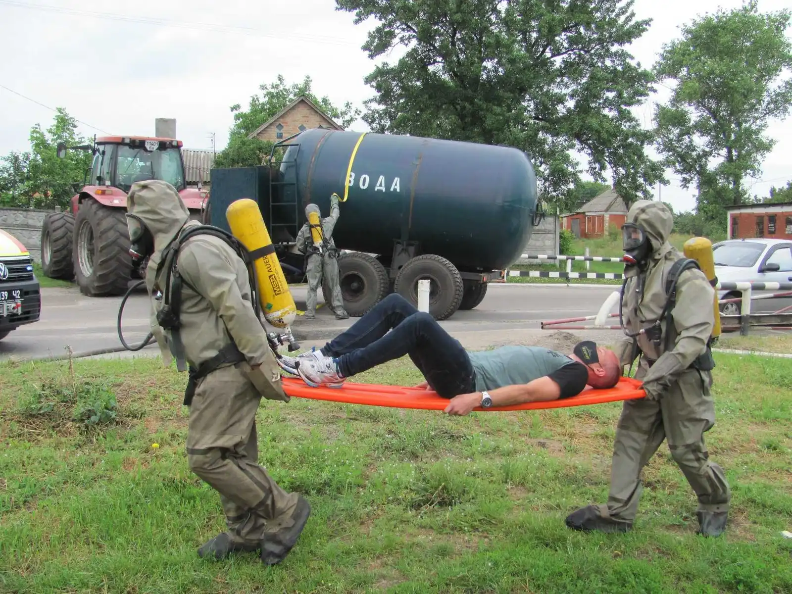 Відповідно до тактичного задуму навчань, на північній околиці селища Приютівка на залізничному переїзді зіткнулися потяг з вантажівкою. Внаслідок аварії пошкоджено цистерну з хлором, відбувається витік речовини. За попередніми даними, пошкоджено одну цистерну, стався витік небезпечної хімічної речовини. Постраждалий – водій вантажівки.
