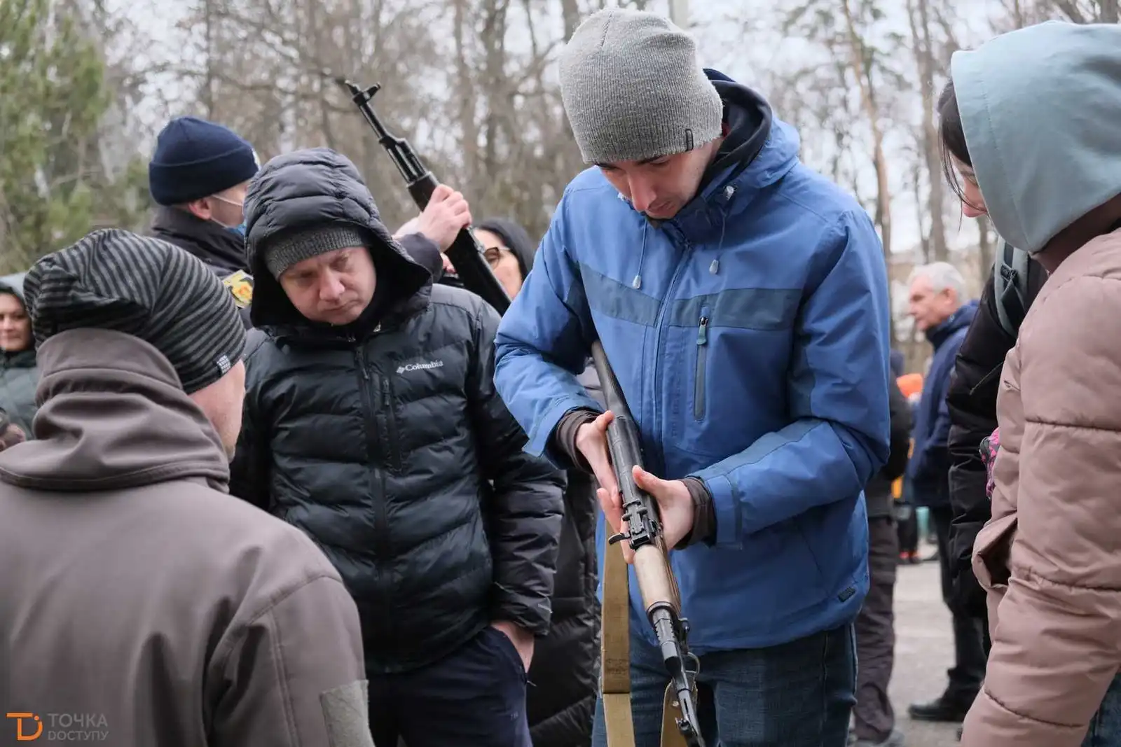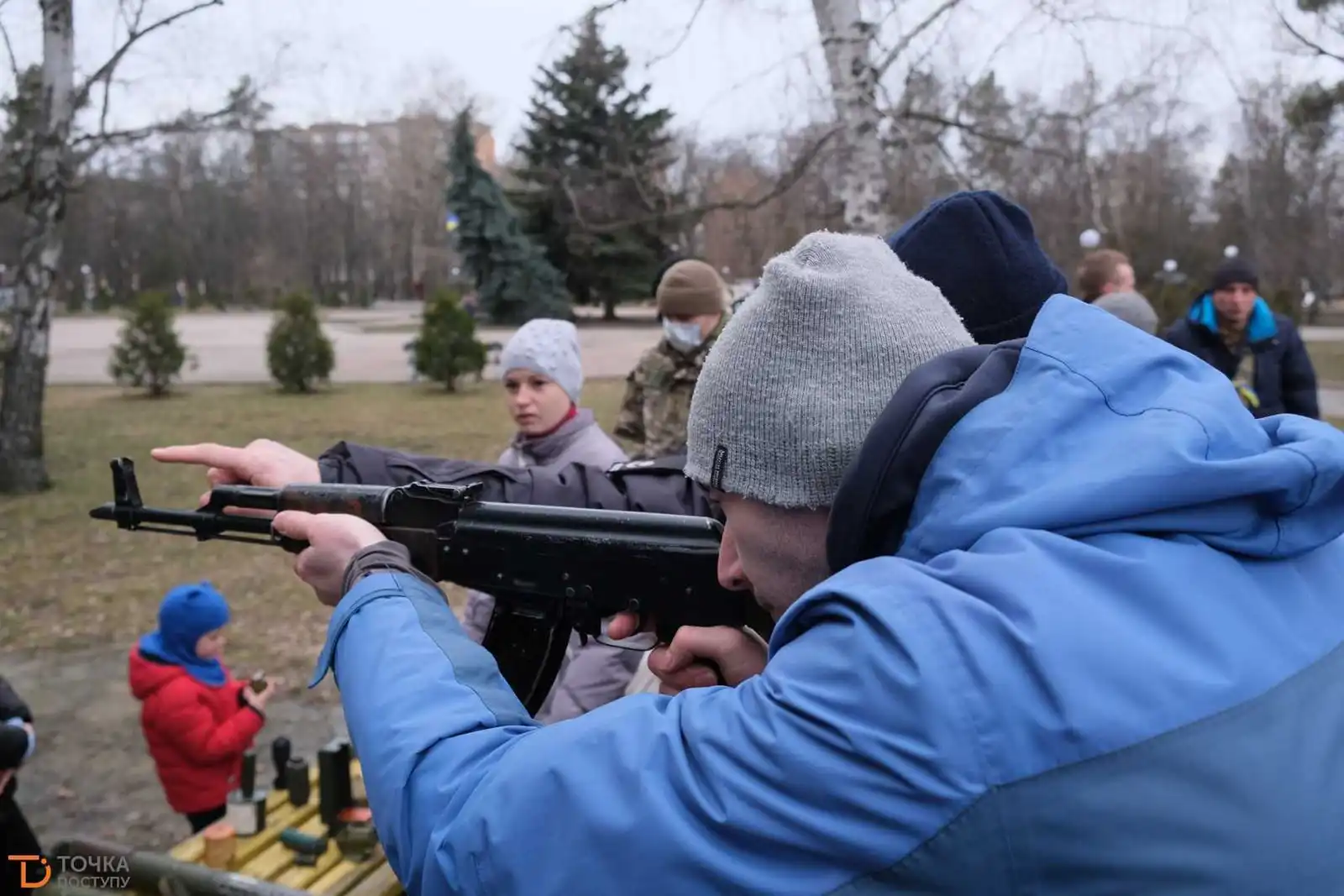 Це вже не перший практичний тренiнг, ранiше подiбнi навчання в обласному центрi проводили для пiдлiткiв, жiнок та дiтей. Тепер, аби допомогти людям подолати панiку, яка охопила багатьох на тлi загострення ситуацiї на Донбасi, запросили всiх охочих.