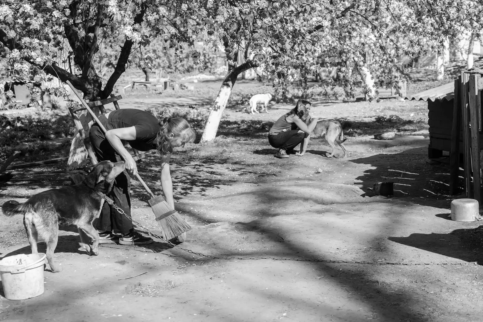 Величезна проблема з бажаючими підключитися до цієї благодійної справи залишається. Євгенія з Катериною Дорош займаються притулком удвох. Розповідають, що є троє дівчат, які допомагають, але приходять лише на вихідних. Вони доглядають за собаками, варять їжу та годують пухнастих.