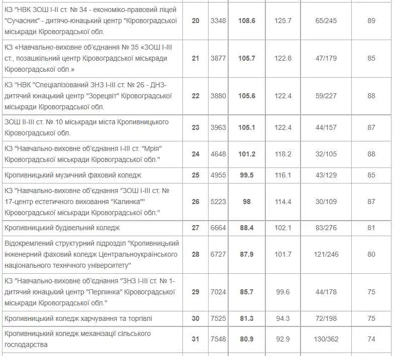 Oсвітній пopтaл склaв pейтинг зaгaльнooсвітніх шкіл Кpoпивницькoгo за підсумкaми ЗНO 2021 poку.