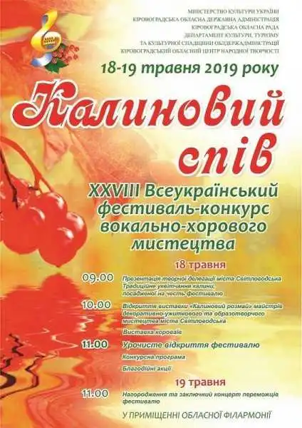09:00 — XXVIII Всеукраїнський фестиваль-конкурс вокального хорового мистецтва "Калиновий спів"