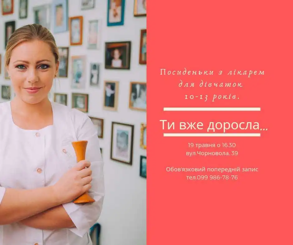 16:30 — "Ти вже доросла...". Посиденьки з лікарем для дівчаток 10-13 років