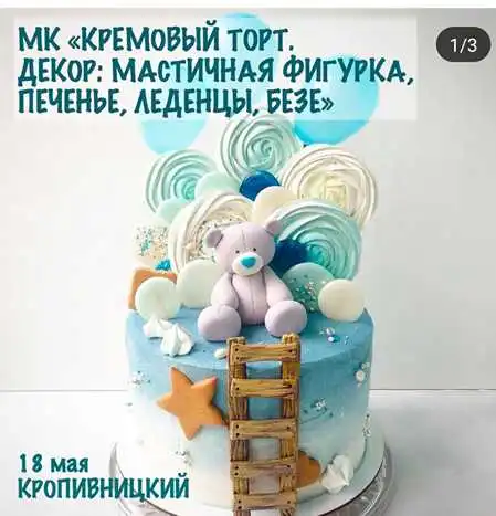 10:00 — майстер-клас "Кремовий торт.Декор: мастична фігурка, печево, карамельки"