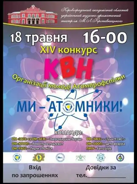 16:00 — ХІV конкурс КВК організації молоді Атомпрофспілки