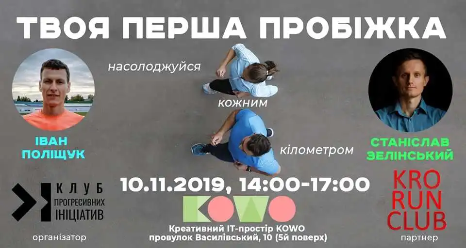 14:00—17:00 — лекції від тренерів бігового клубу KroRunClub "Твоя перша пробіжка"