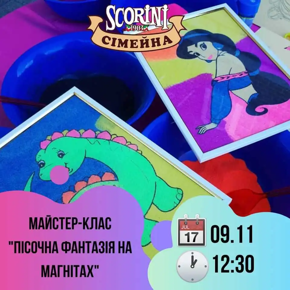 12:30 — майстер-клас "Пісочна фантазія на магнітах"