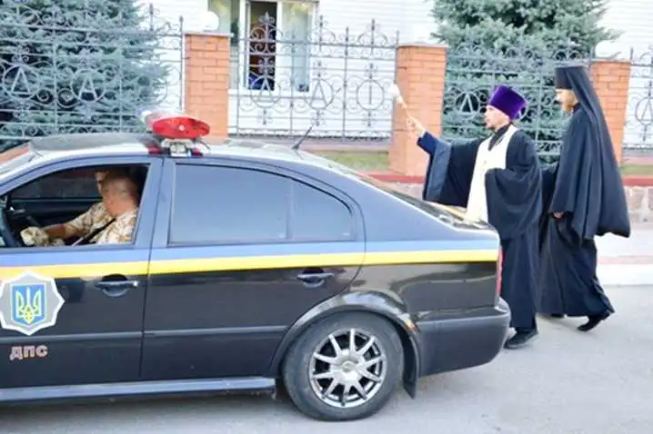 Після церемонії освячення, після дружніх рукостискань від керівництва та колег, близьких та рідних, працівники ДАІ вирушили до місця призначення.