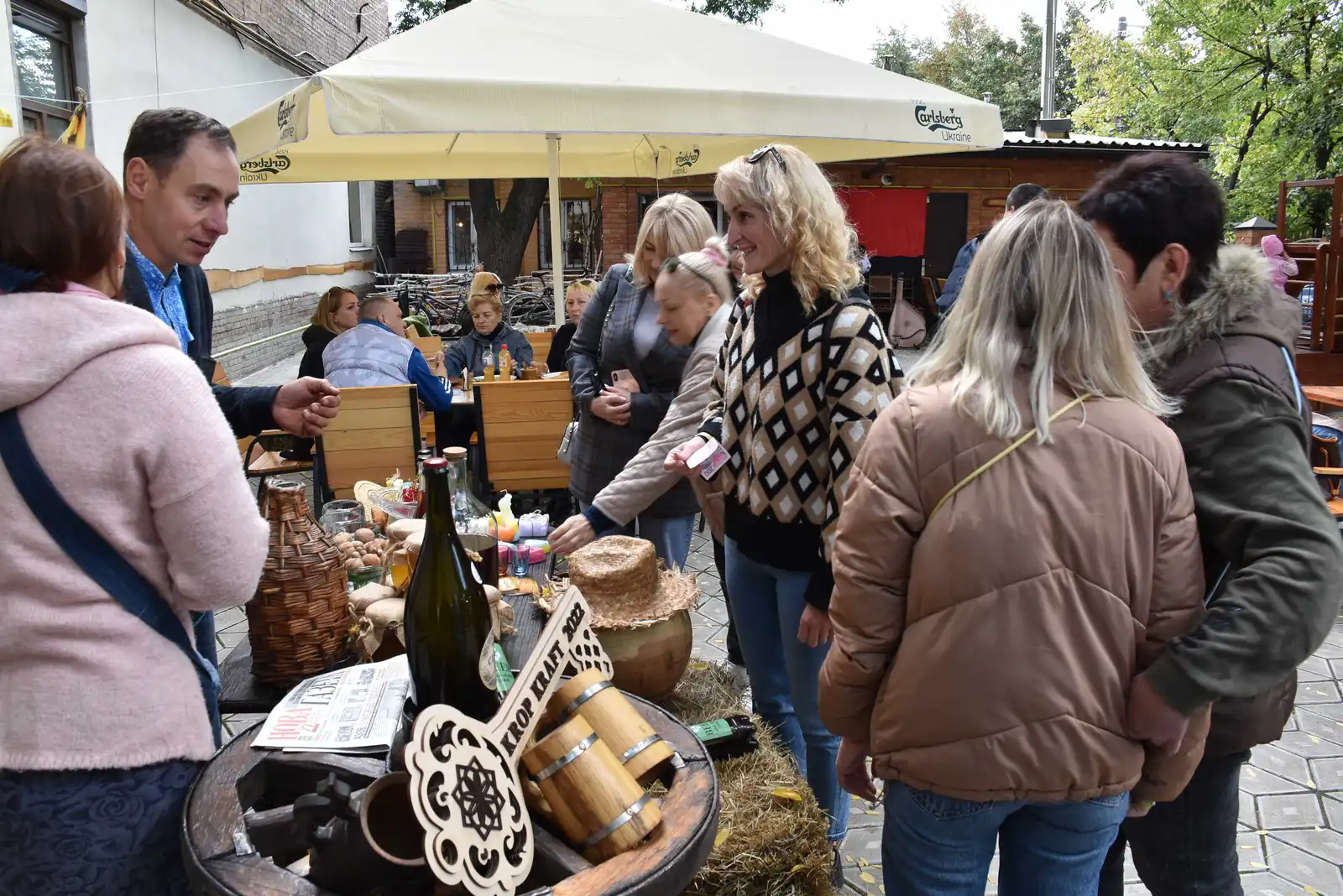 Сьогодні тут дуже затишна атмосфера: тепло, гарно, спокійно, всі один одного пригощають, спілкуються, обмінюються контактами.