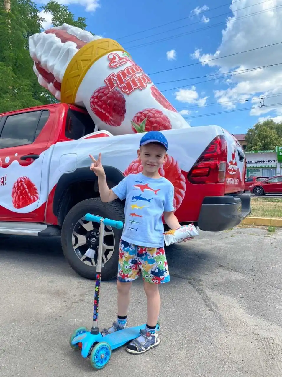 Саме тому, ми перетворили звичайний пікап на фантастичний позашляховик «Виробника щастя». Яскраве, червоне авто з величезною фігурою морозива «Гран-прі» вирушило у мандрівку всією Україною з метою додати трохи щастя її жителям.