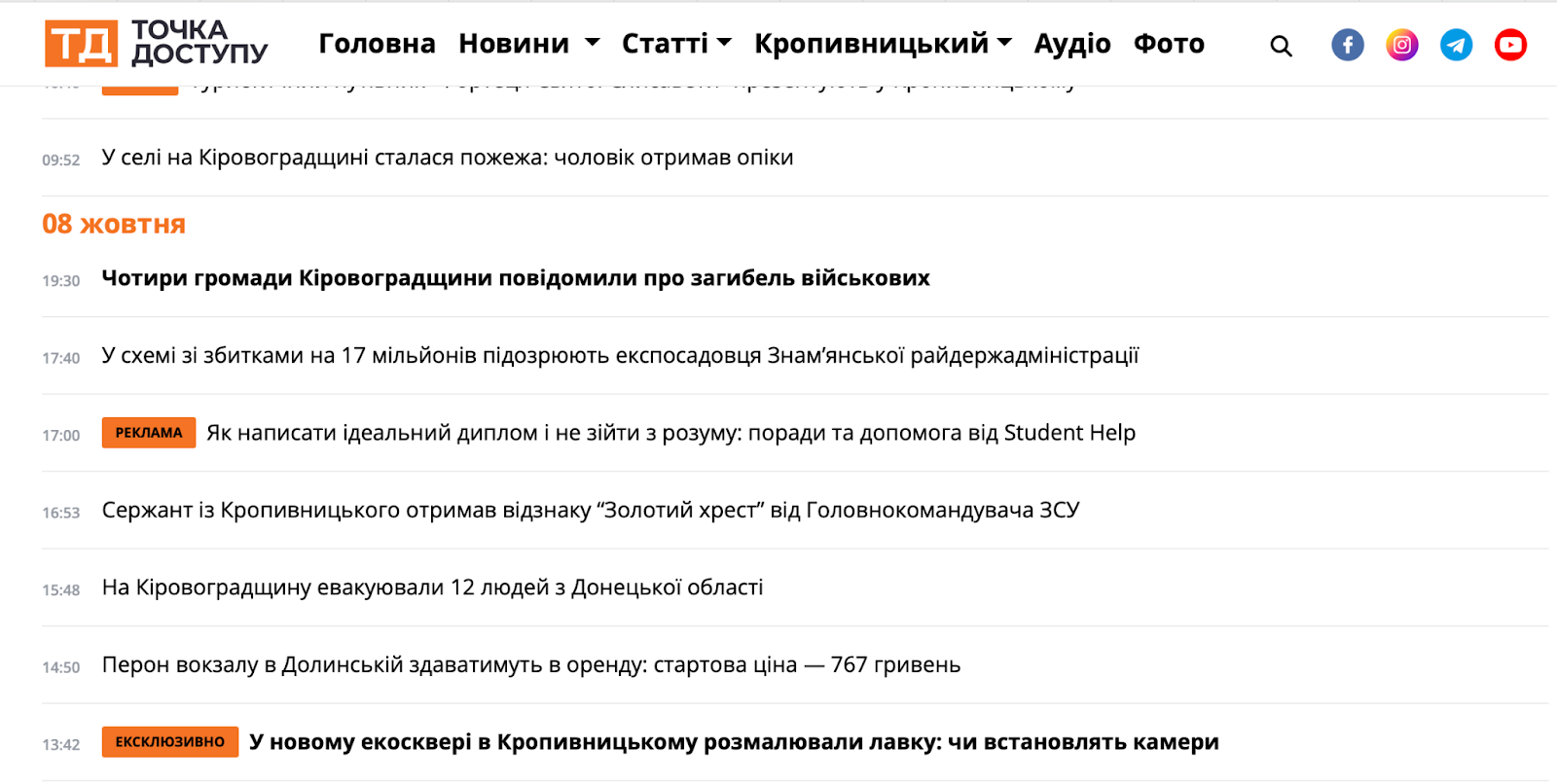 П’ятірка топових медіа регіону, дійсно, не джинсує. Цього року популярні новинні онлайн-медіа Кіровоградщини публікували збалансований контент без хайпу, клікбейту та кричущих заголовків.