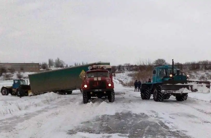 Нагадаємо, через ожеледь на Кіровоградщині застрягли три потужні вантажівки.