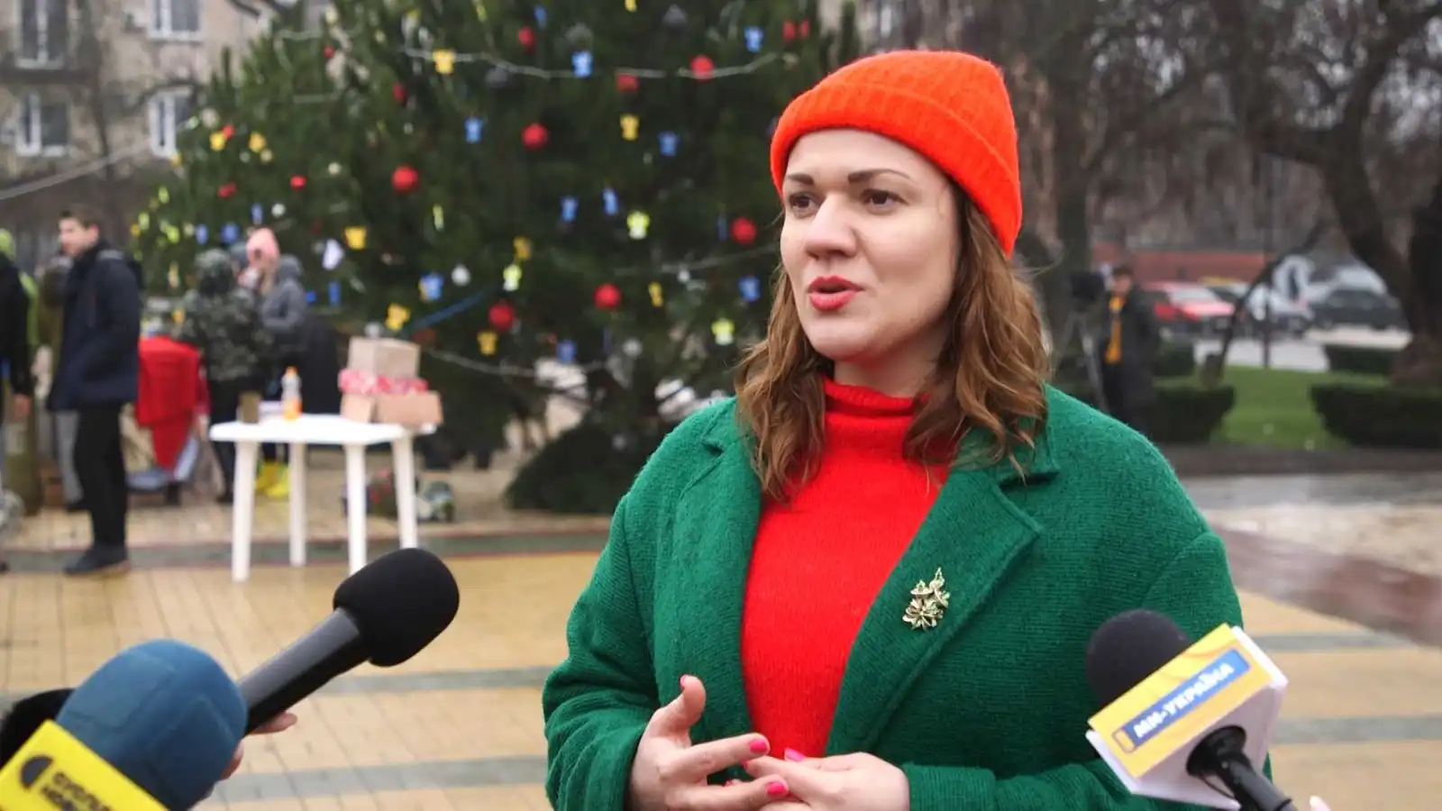 У нас деревце присвячене Миколаєву і ми його прикрашали разом із жителями Миколаєва. До речі, їх дуже багато прийшло – і діти, і дорослі. І там, всередині такий віночок – жінка принесла, в неї син загинув і вона створила таку інсталяцію, – розповідає керівниця департаменту агропромислового розвитку ОВА Валерія Фурманова.