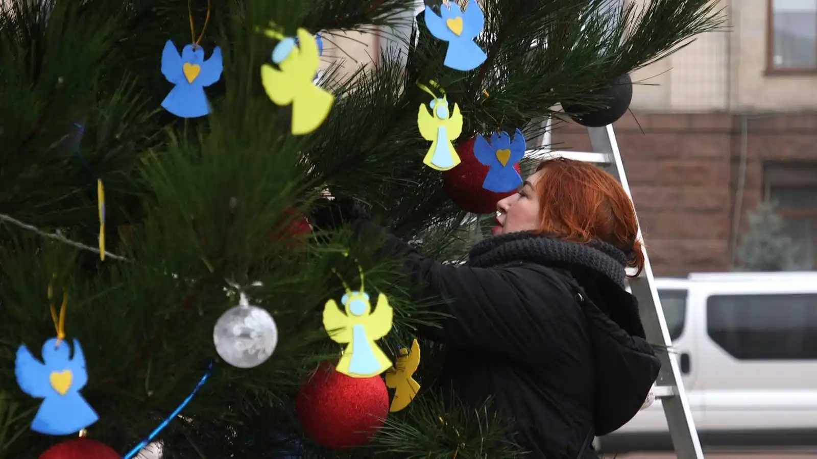 Кожна ялинка має свою кольорову гамму – відповідно до кольорів гербів нескорених міст. Волонтерська ялинка – червоно-чорна. На кожному дереві – жовто-блакитні янголи. Ялинку на честь Херсона прикрашали переселенці з цього ж міста.
