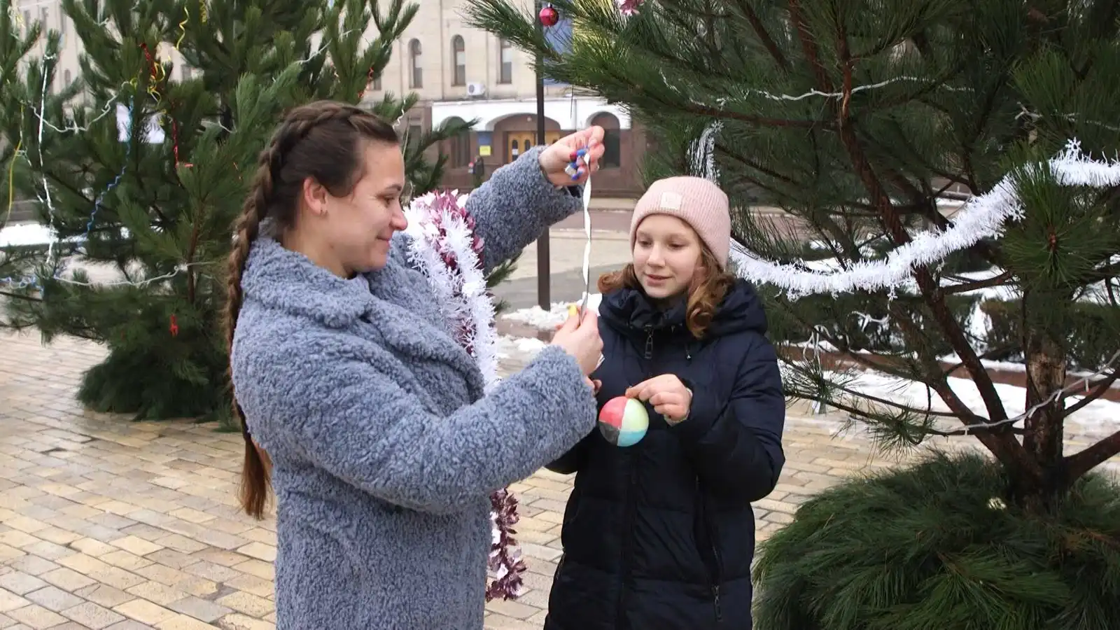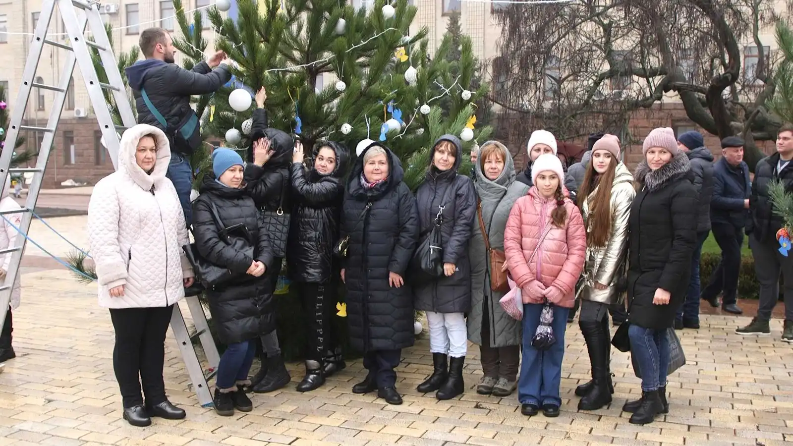 Діти й дорослі, місцеві та переселенці – новорічні дерева у Кропивницькому прикрашали всім миром. Десять дерев символізують міста — Волноваху, Гостомель, Охтирку, Миколаїв, Чернігів, Харків, Херсон, Ірпінь, Маріуполь та Бучу. Ще два — присвячені українській армії та волонтерам.