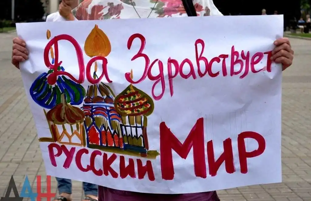 В окупованому Донецьку місцеві жителі провели флешмоб «Донбас говорить російською». У заході взяли участь жителі міста, дитячі колективи і навіть «депутати Народної ради ДНР». В рамках акції учасники тримали плакати «Російський світ - НАШ мир!», «Нас не перемогти, ми - росіяни» і «Я думаю російською». Учасників заходу було близько двох десятків