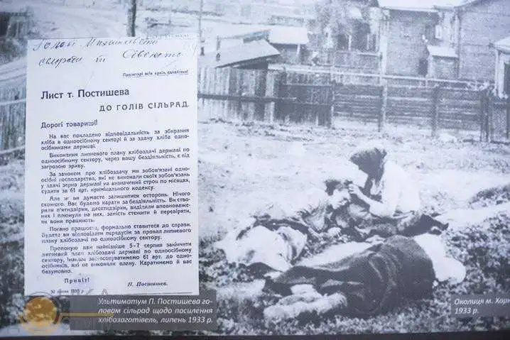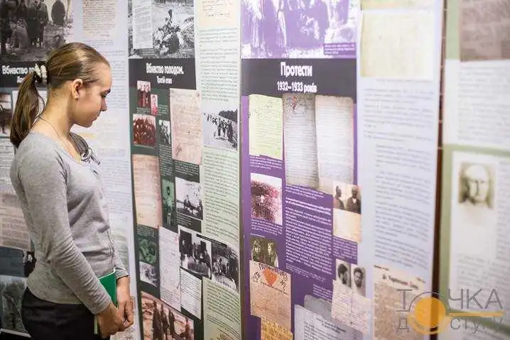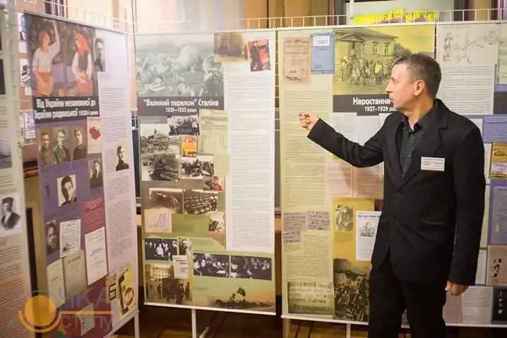 На 18 стендах розміщено фотодокументи про події 20- початку 30-х років в Україні, коли визвольний рух закінчився геноцидом українського народу 1932-33 років.