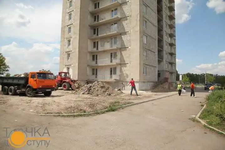 Прибирання будівельного сміття біля будинку військових в Кіровограді (вул. Маршала Конєва, 16/17) відбулося сьогодні, 27 травня, передає кореспондент Точки доступу.