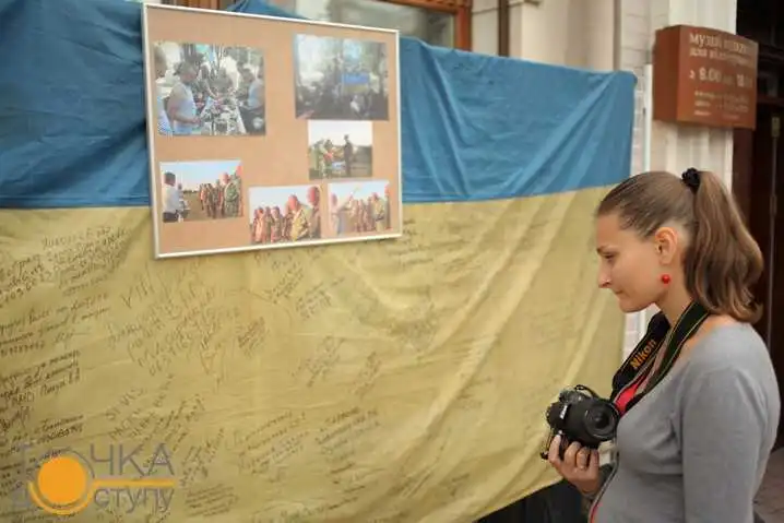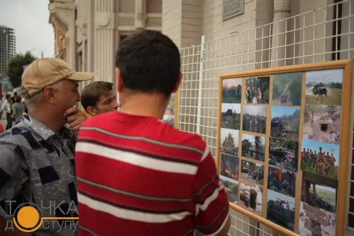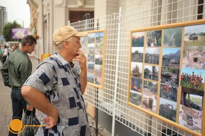 На виставці представлені світлини, які відображають події АТО з квітня 2014 року по червень 2015 року. Фотографії зроблені самими військовими.