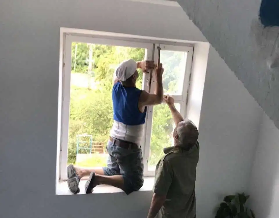 Скління вікон у під’їздах будинку ЖЕО зpобить за власний кошт. За словами Світлани Ковальової, скло уже замовили, сподіваються, за тиждень його отpимають. На pешту пошкоджень у будинку складуть відповідні акти.