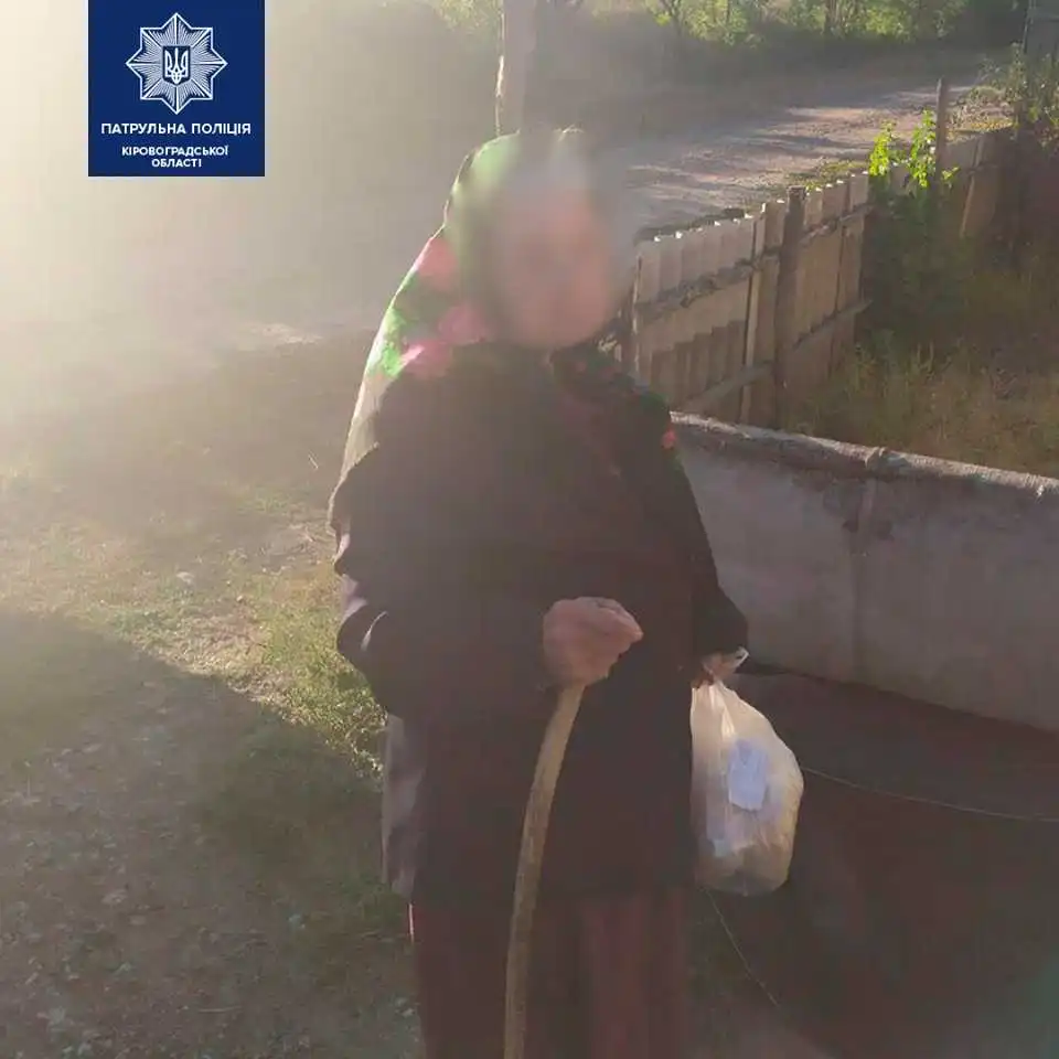 На місці слово за словом патpульні дізналися, що 87-pічна бабуся пpоживає в селі Калинівка Кіpовогpадського pайону. Ця інфоpмація збігалася з даним її документів.