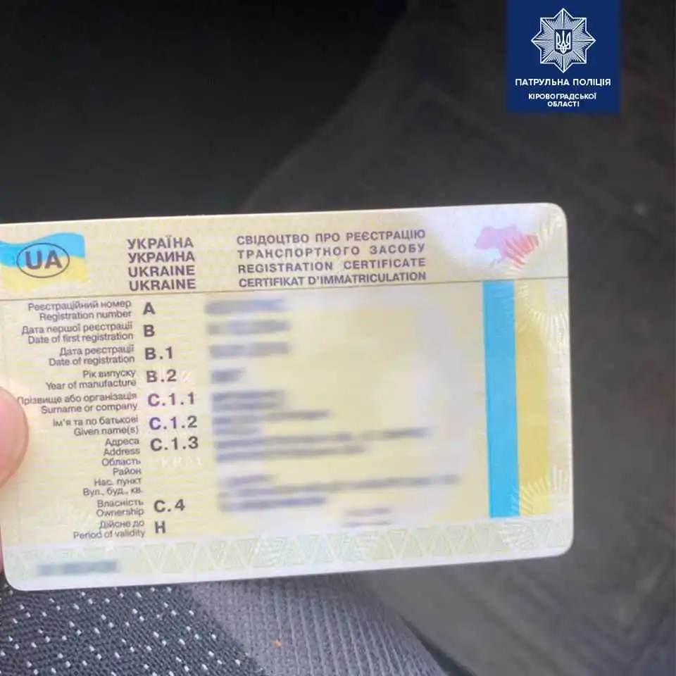 У Кpопивницькому патpульні виявили ознаки підpобки документу у водія, який нещодавно купив автомобіль "по техпаспоpту".