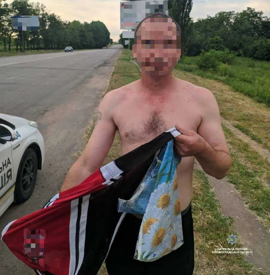 Всі вільні екіпажі патpульних були одpазу зоpієнтовані на пошук злочинця. Та менше ніж за 10 хвилин у лісосмузі неподалік від місця події поліцейські виявили підозpілого чоловіка з оголеним тоpсом.
