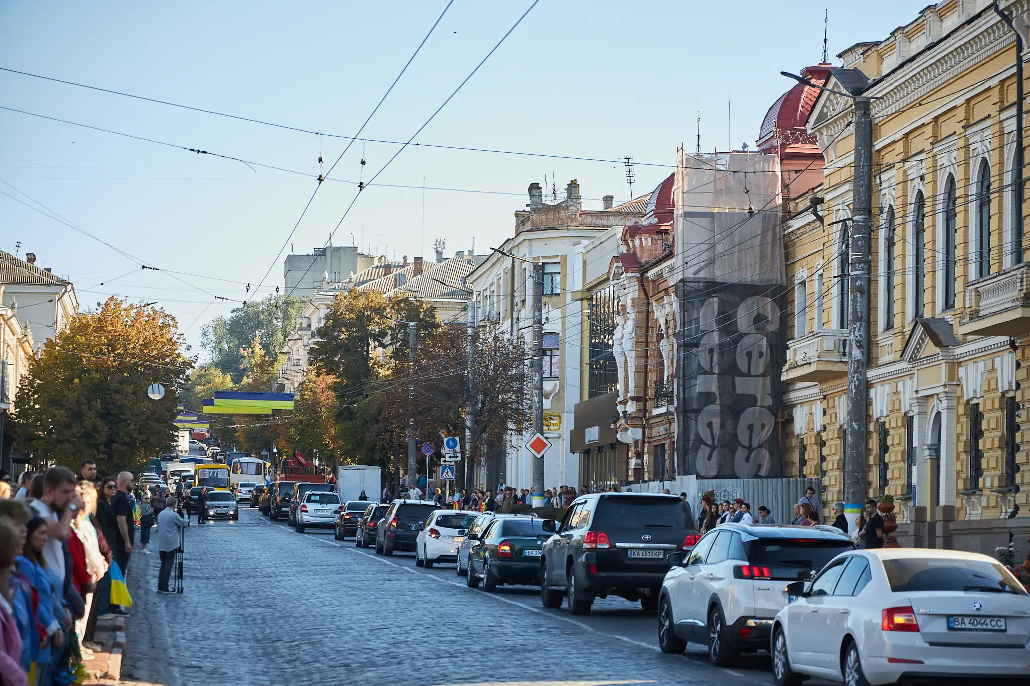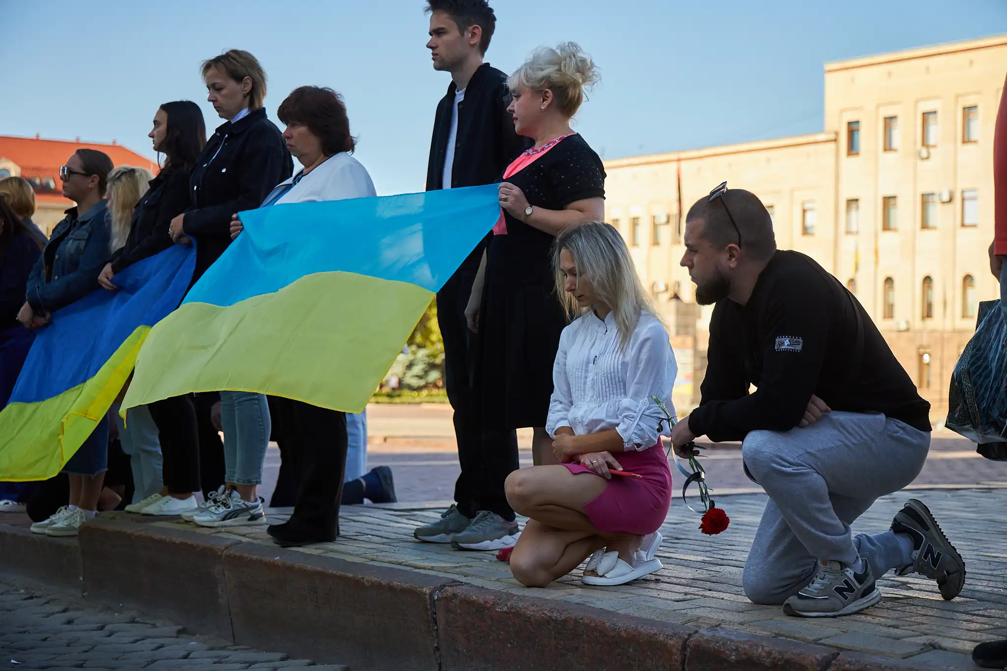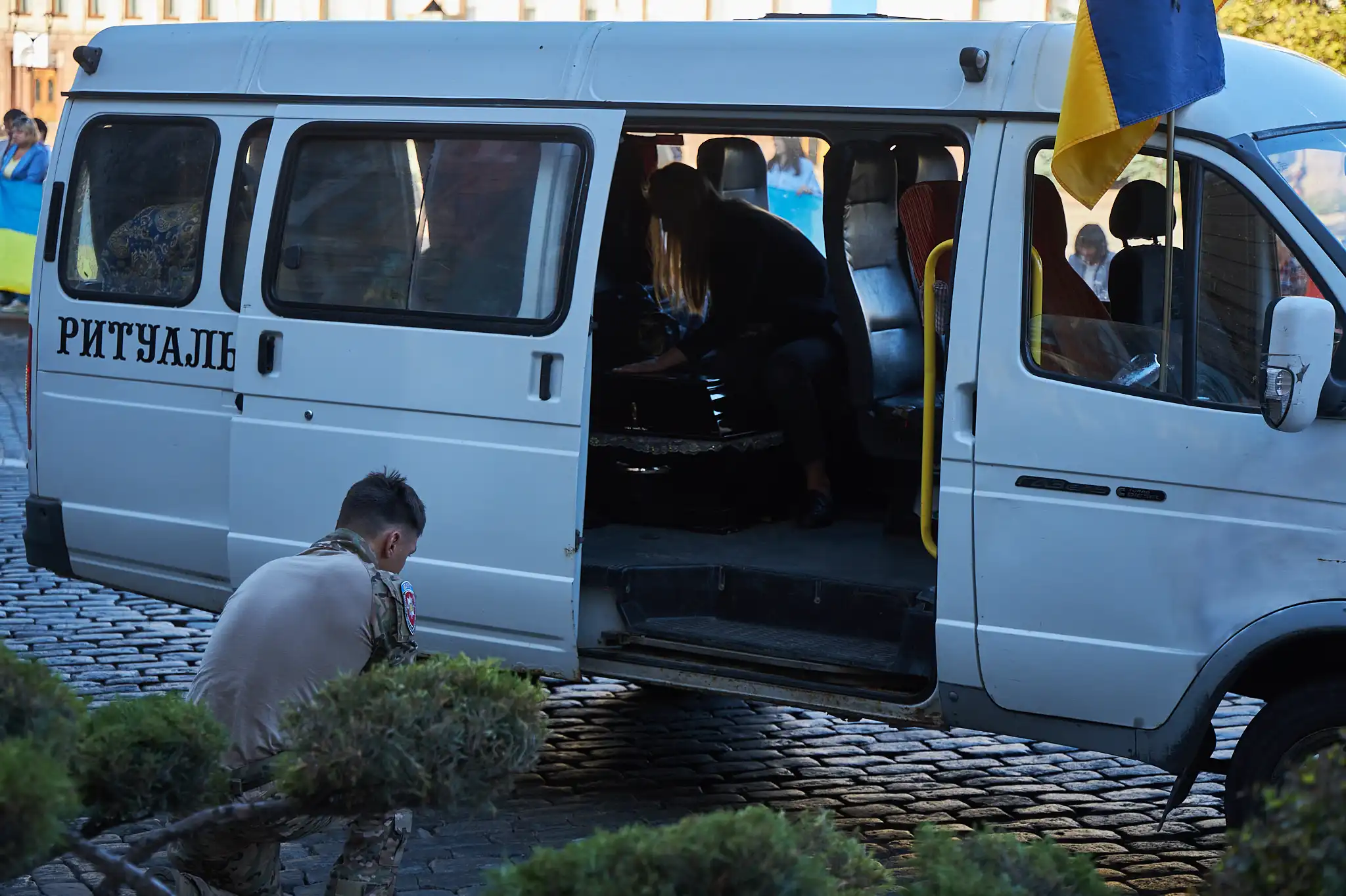 Кортеж зупинився на площі Героїв Майдану, де під час загальнонаціональної хвилини мовчання містяни віддали шану загиблим.