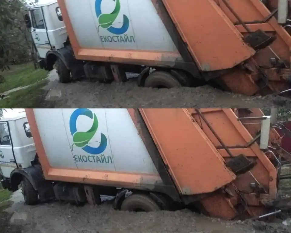 У Кропивницькому сьогодні, 14 жовтня, автомобіль підприємства "Екостайл", яке займається вивезенням і переробкою твердих побутових відходів, загруз у багнюці.