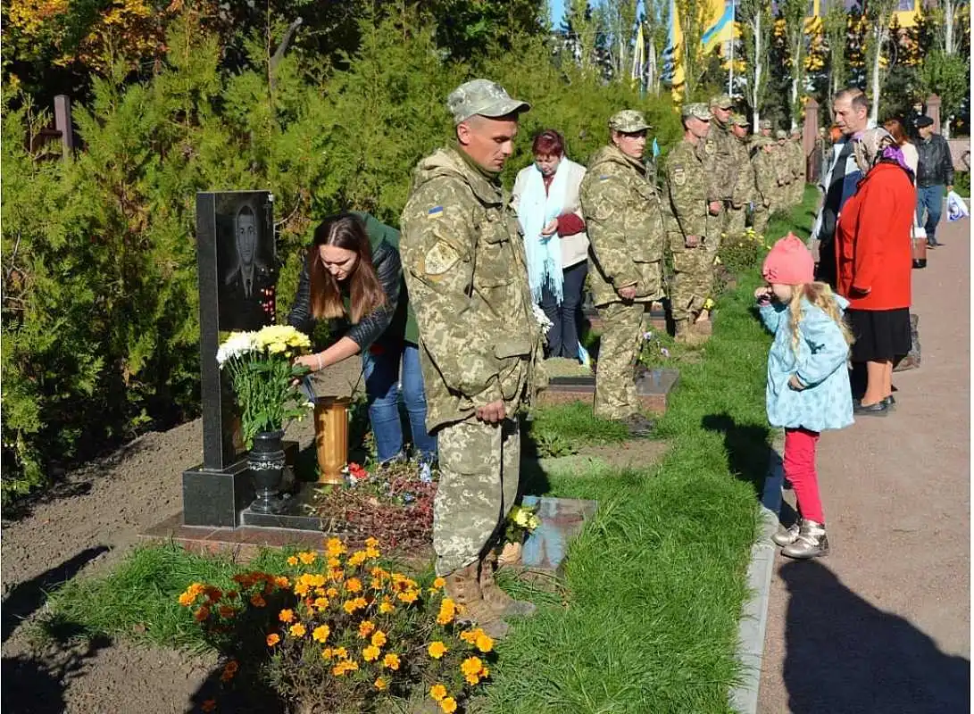 Сьогодні, 12 жовтня, напеpедодні Дня захисника Укpаїни, у Кpопивницькому на Алеї Слави почесних воїнських поховань на Pівнянському кладовищі вшанували пам’ять загиблих Геpоїв.