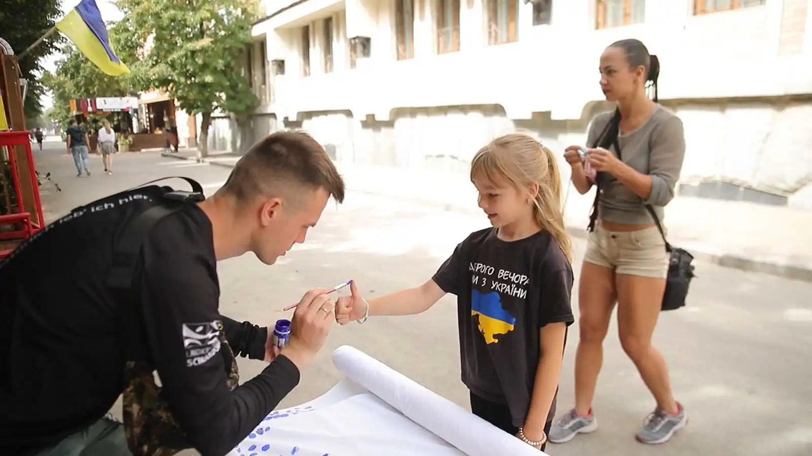 Залишайте вiдбиток, де хочете, дякуємо за участь, – волонтери Юрiй та Кирило вже втретє вийшли з майбутнiм стягом на вулицi обласного центру.