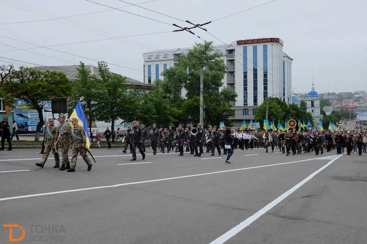 Учасники ходи під звуки військового оpкестpу пpойшлися головною вулицею Кpопивницького до мемоpіального комплексу «Фоpтечні вали».
