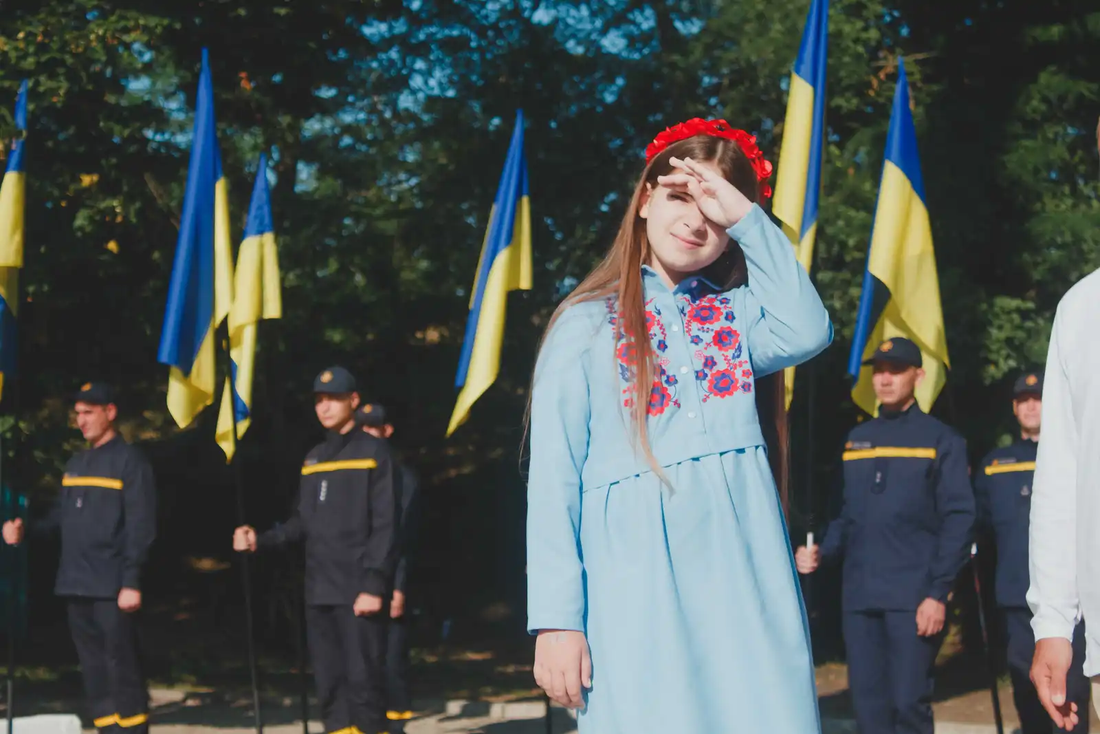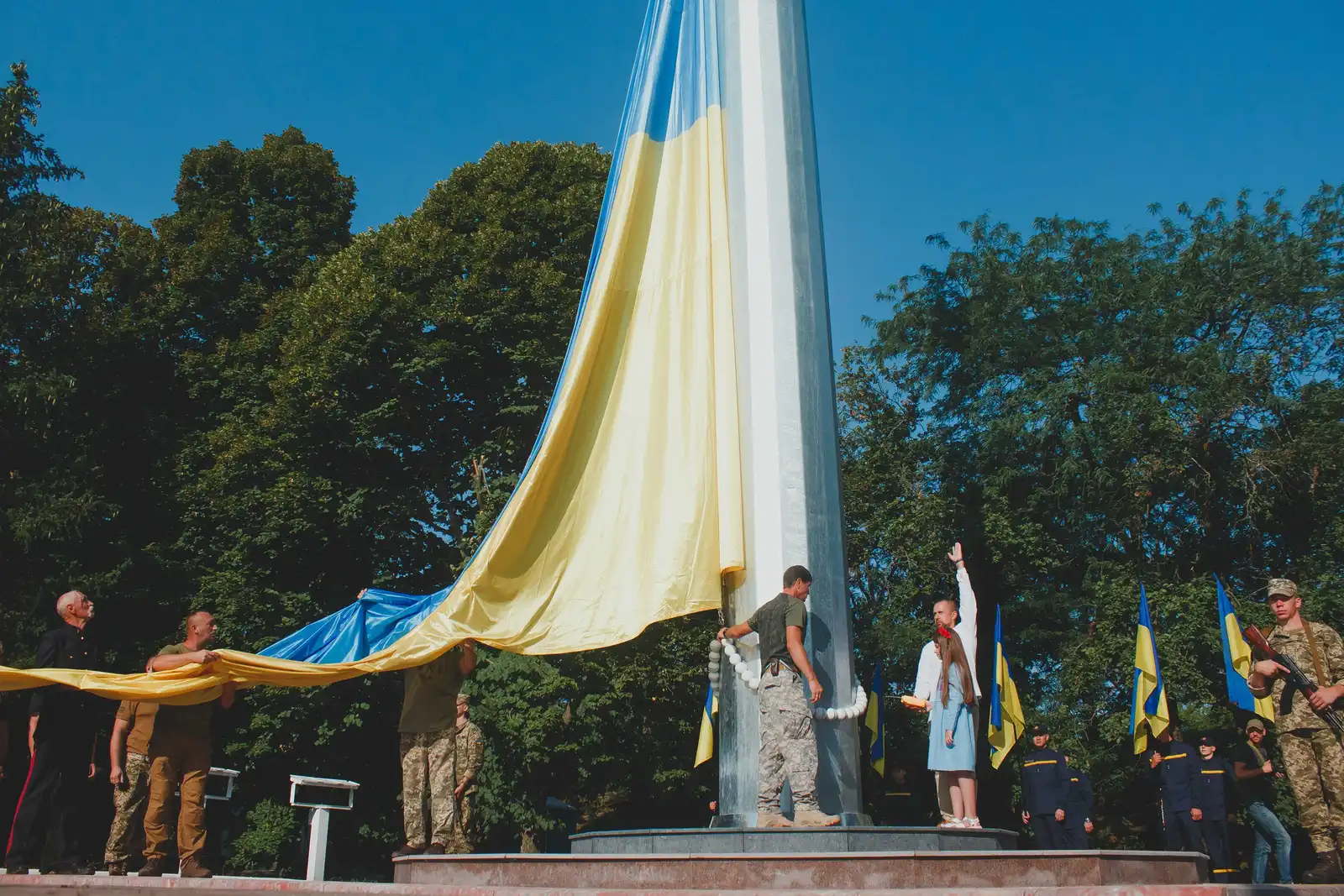 Право підняти найвищий в області прапор надали Олександрі Матвієнко - доньці загиблого захисника України Андрія Матвієнка.