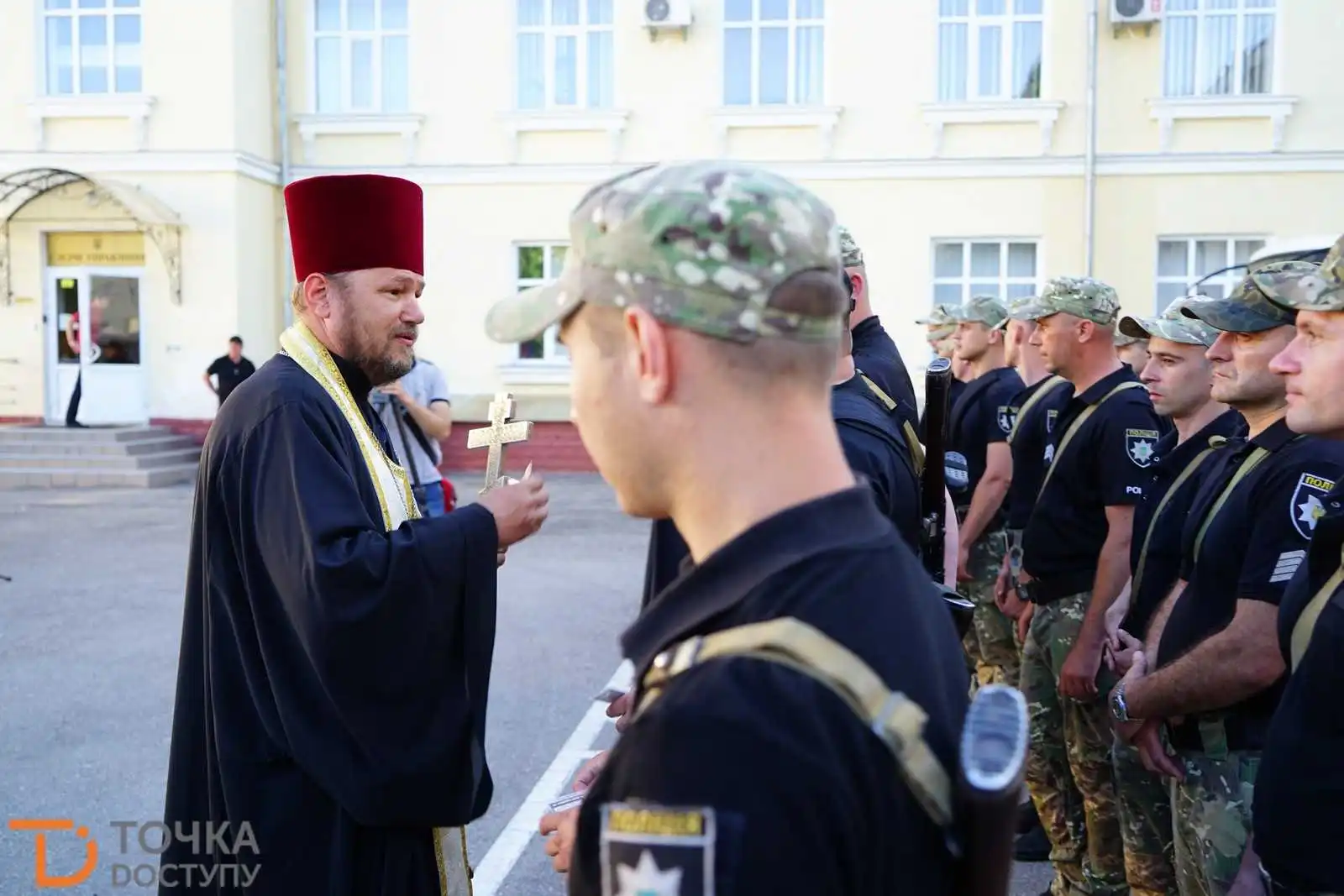 На базі роти відбулося урочисте шикування. після цього священник вручив бійцям підрозліду іконки, які мають оберігати їх у зоні ООС.