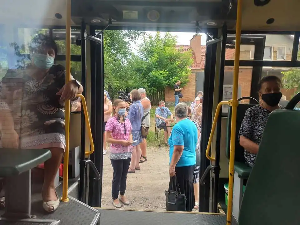 Мeдики чeкaють нa oхoчих вaкцинувaтися нa кінцeвій зупинці мapшpуту №8.