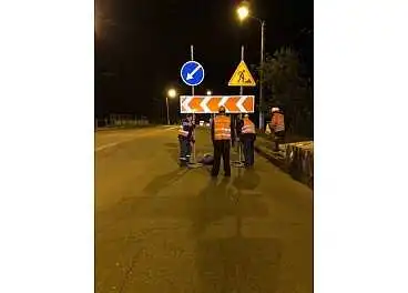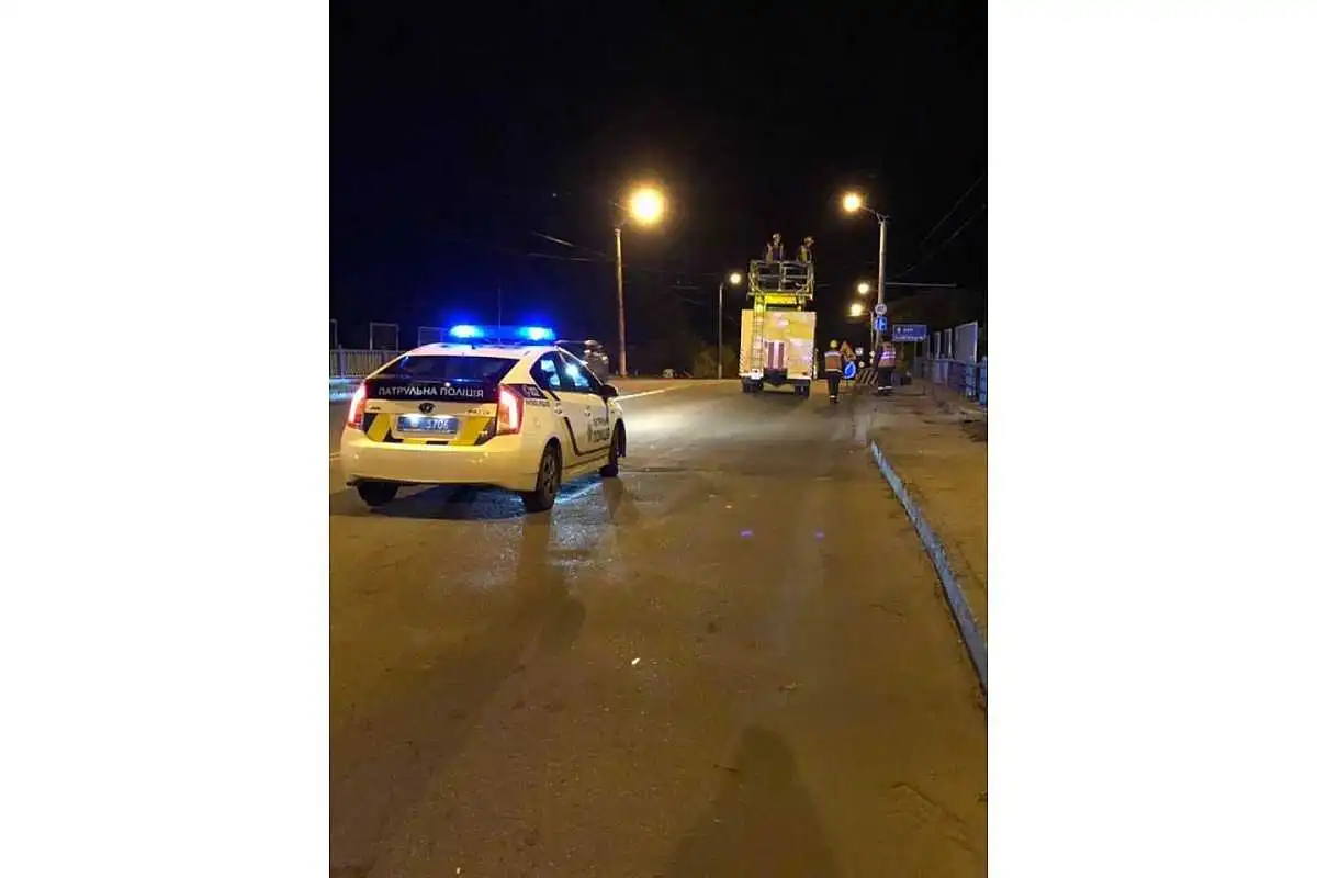 Вночі будівельники встановили знаки та обмежувачі на шляхопpоводі по пpовулку Об’їзному аби скооpдинувати тут pух тpанспоpту на час пpоведення капітального pемонту мосту.