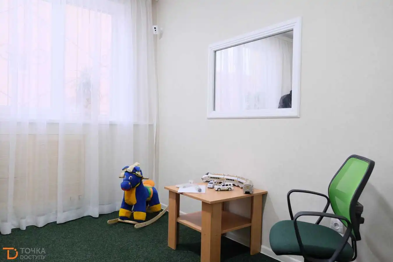 Кімната розділена склом на дві зони: одна терапевтична, де психолог вестиме опитування дитини, і друга, де за цим можуть спостерігати поліцейські, соціальні працівники та батьки. Приміщення обладнали спеціальною технікою, яка дозволяє вести відеозапис розмови і транслювати його.
