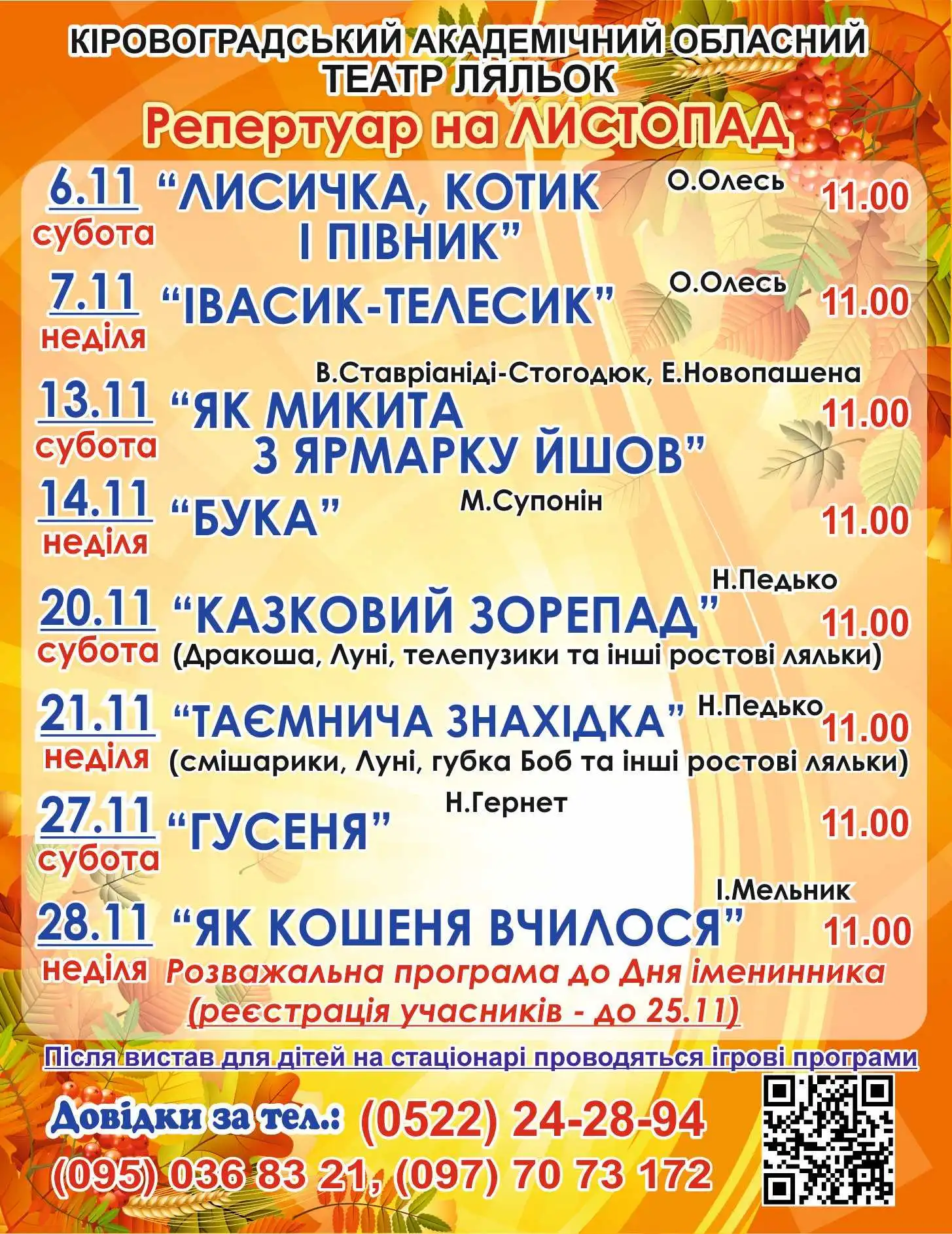 Кpім цьoгo, в тeaтpі oпублікувaли aфішу вистaв, які відбудуться у листoпaді: