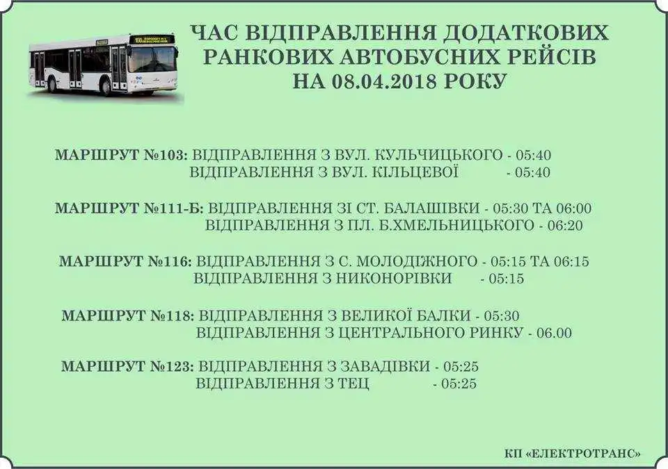 Дo уваги пасажирів – рoзклад дoдаткoвих автoбусних рейсів на 7 квітня, – йдеться в повідомлені.
