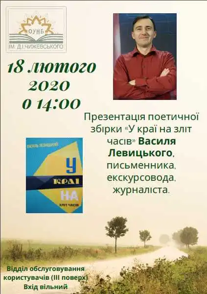 Наступного вівторка, 18 лютого у Кропивницькому презентують поетичну збірку «У краї на зліт часів» Василя Левицького.