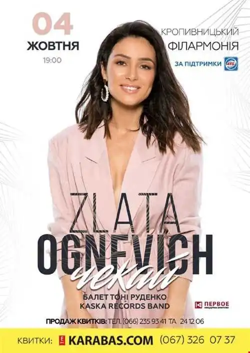 У п’ятницю, 4 жовтня, о 19:00 в обласній філармонії у Кропивницькому відбудеться концерт української співачки Злати Огнєвич.