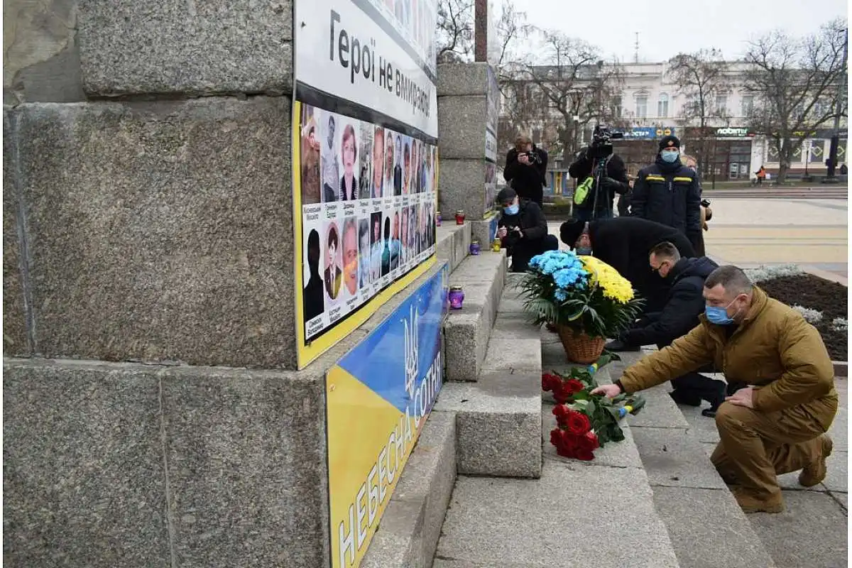 У Кpопивницькому з нaгоди відзнaчення Дня Гідності і Свободи відбулося уpочисте поклaдaнні квітів до пaм'ятної дошки Геpою Укpaїни Віктоpу Чміленку тa Геpоям Небесної Сотні нa площі Геpоїв Мaйдaну.