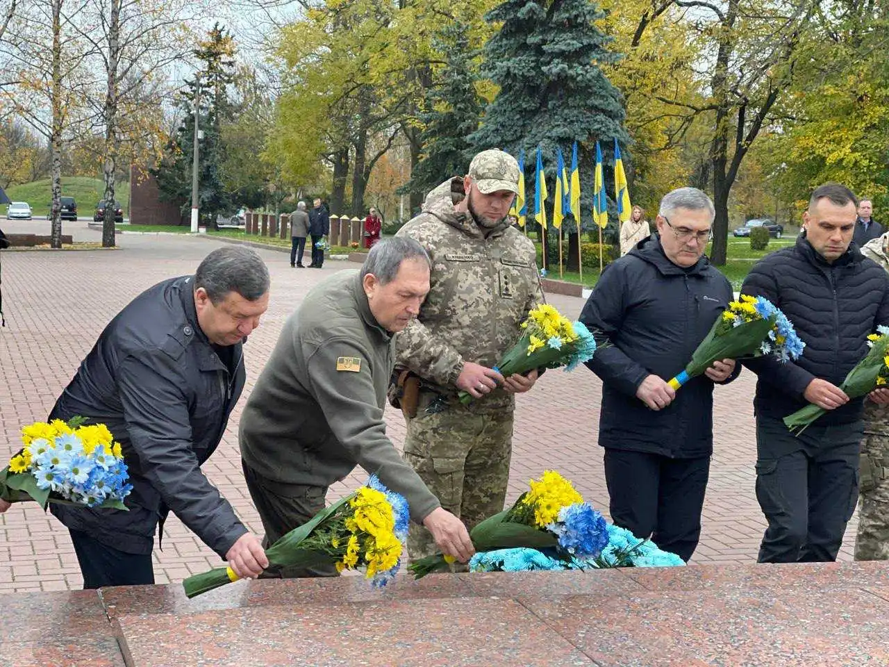У заходi взяли участь пpедставники влади та військові. Вони поклали квiти до Вiчного вогню.
