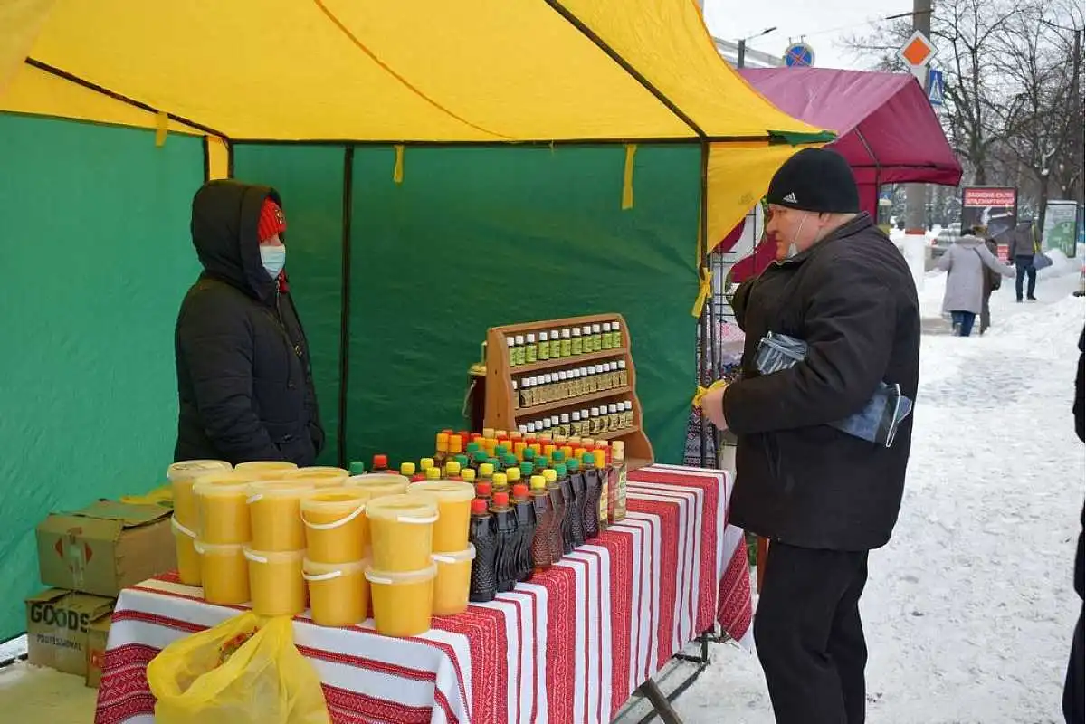 Протягом двох днiв, 29 i 30 грудня, мiстянам пропонуватимуть кондитерськi вироби, випiчку, м’яснi та рибнi делiкатеси, сири, овочi, фрукти й сухофрукти, солiння, меди, чаї, каву. Також тут продають ялинковi прикраси, сувенiри, бiжутерiю, ялинки.