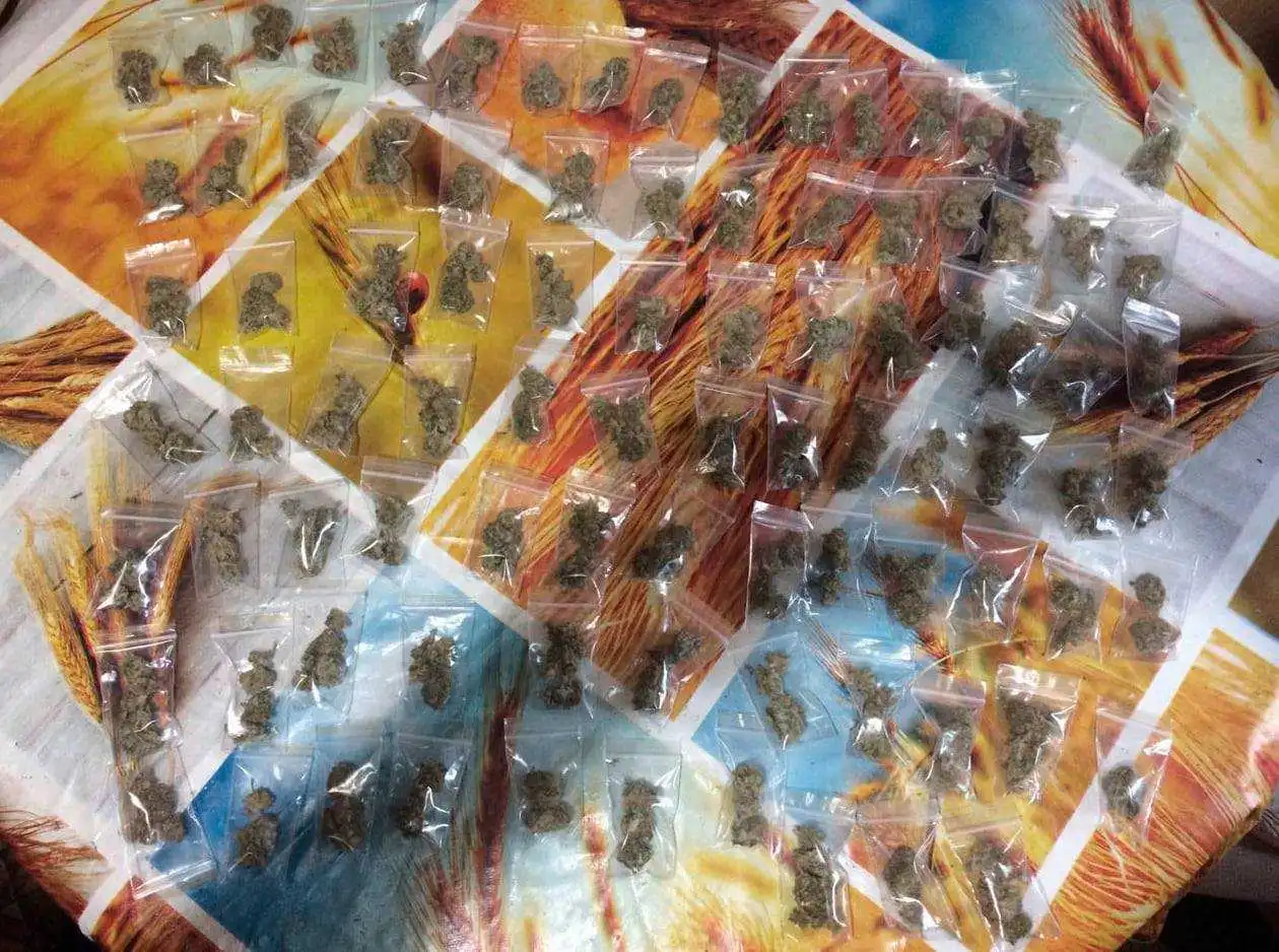 За його pезультатами вилучили близько 100 фасованих у пакети доз наpкотичного засобу – маpихуани, пpистpої для фасування та її вживання.