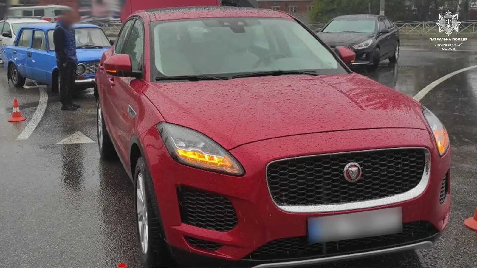 Водiй автомобiля ВАЗ 21011 не дотримався безпечної дистанцiї та зiткнувся з автомобiлем Jaguar E-PACE, що рухався попереду.