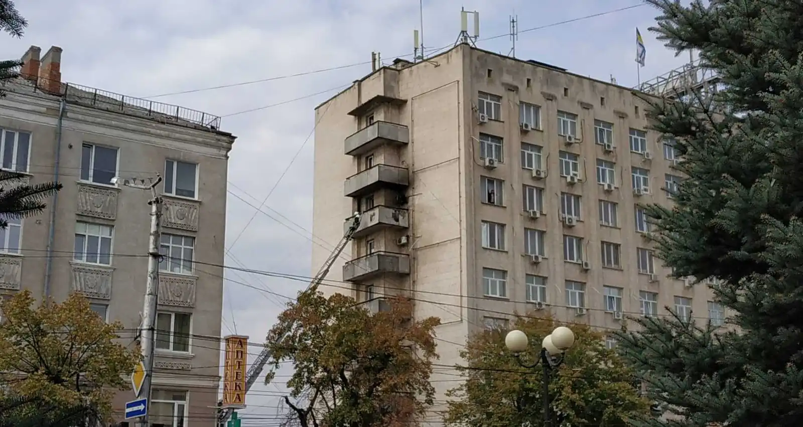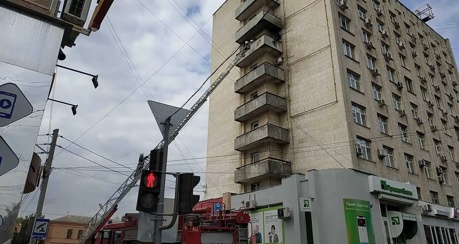 Як повідомила речниця У ДСНС в області Оксана Мачак, повідомлення надійшло від пересічного громадянина про пожежу 1,5 кв.м. сміття на балконі 7-го поверху колишнього готелю "Україна".